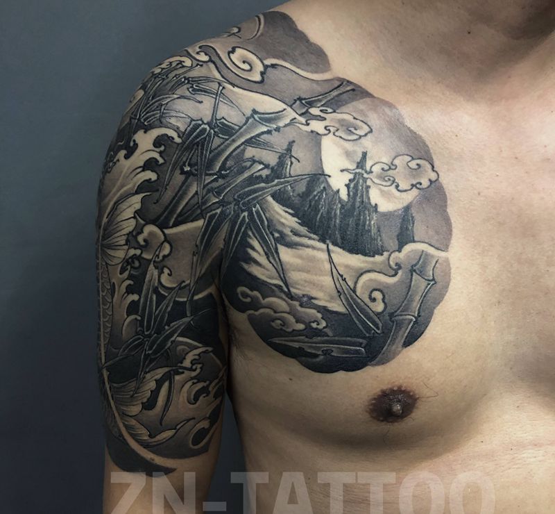 当前位置: 首页 >福建省三明市纹身店-执念刺青社纹身图案>鲤鱼半胛纹身图片_肩部胸部新传统纹身图案