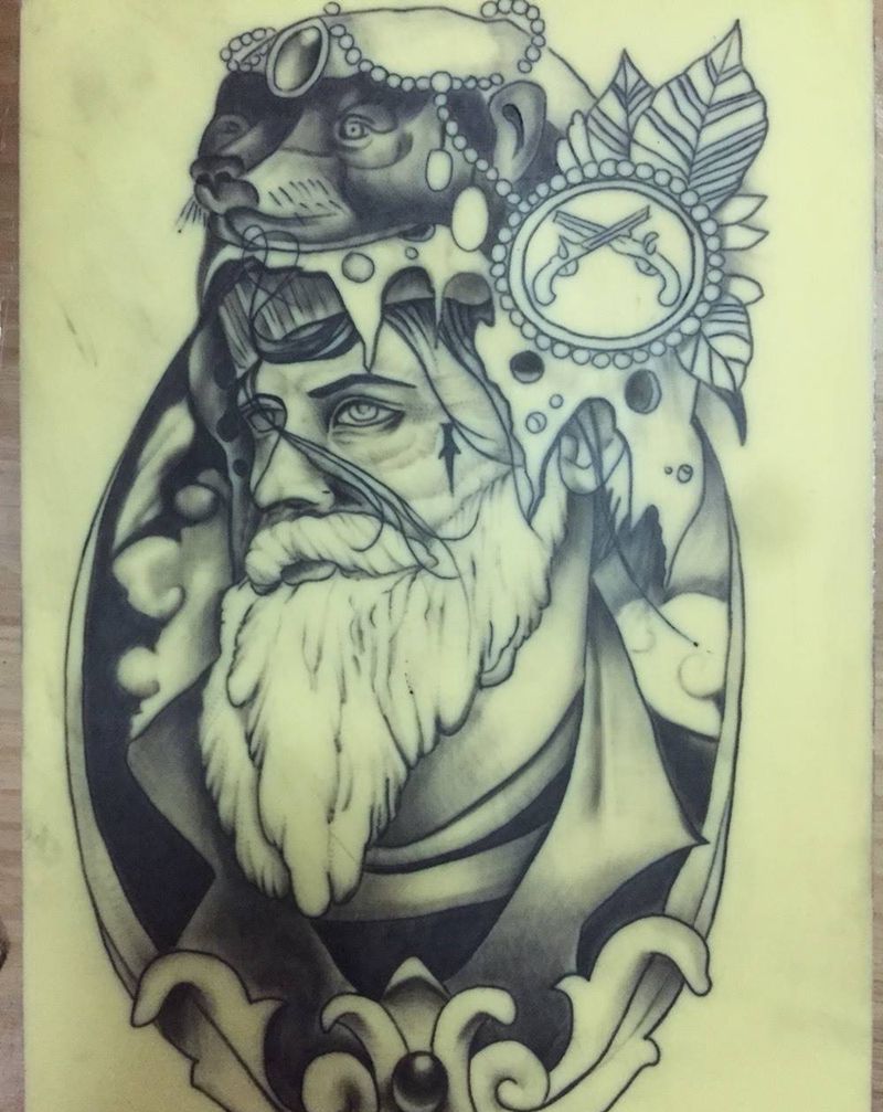 当前位置: 首页 >福建省泉州市纹身店-九鸣刺青纹身图案>老头开个纹身图片
