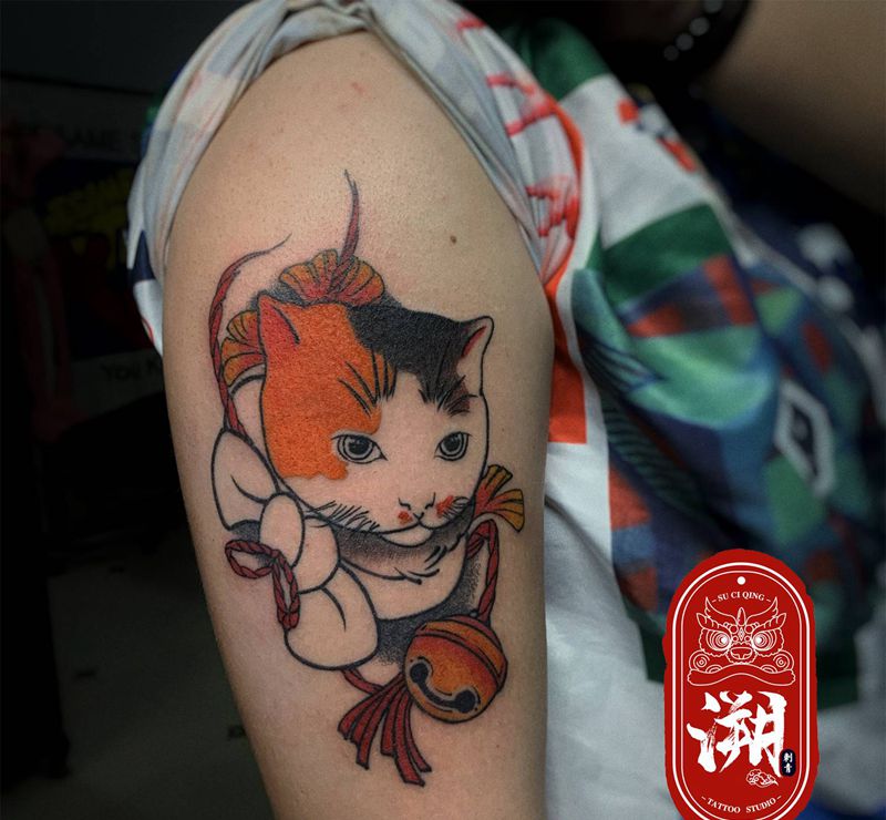 • T招财猫纹身图片