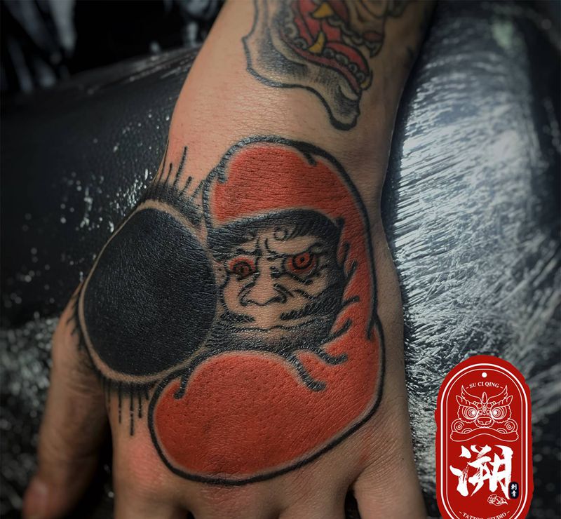 大日如来?纹身图片_手部老传统达摩蛋日式纹身图案