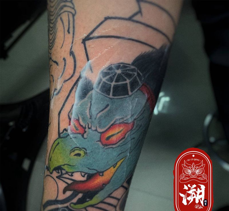 • T网红王老大花腿龙纹身图片_腿部新传统纹身图案