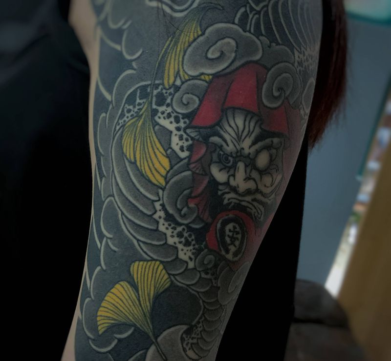 日式大臂纹身图片_手臂老传统达摩蛋蛇蛇纹身图案
