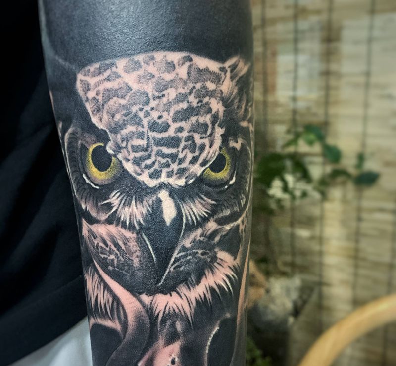 呆头鹰纹身图片_手臂手部欧美写实欧美猫头鹰写实纹身图案