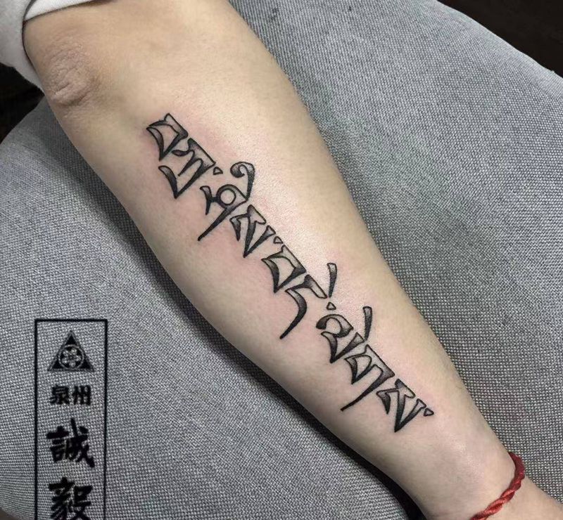 当前位置: 首页 >福建省泉州市纹身店-诚毅刺青纹身图案>藏文纹身纹身图片_手臂腿部花体字水墨纹身图案