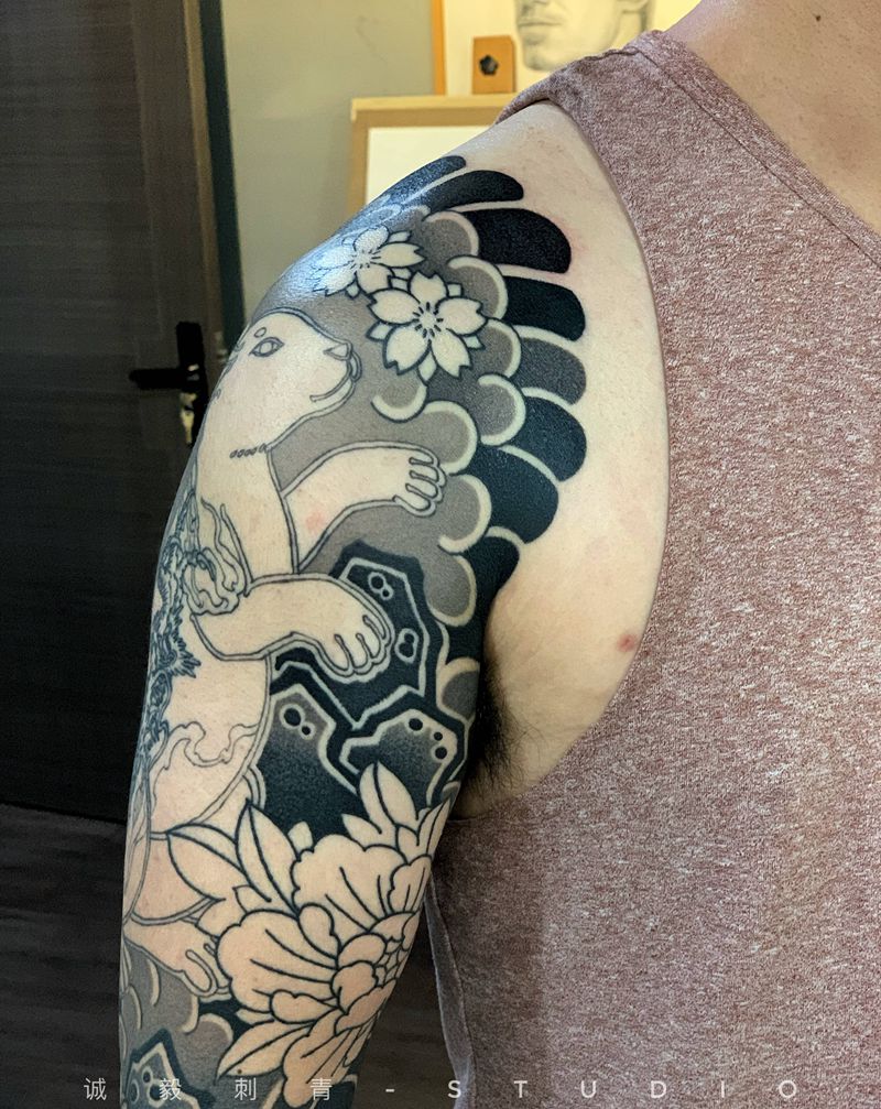 当前位置: 首页 >福建省泉州市纹身店-诚毅刺青纹身图案>生肖花臂纹身图片_手臂肩部新传统老传统纹身图案