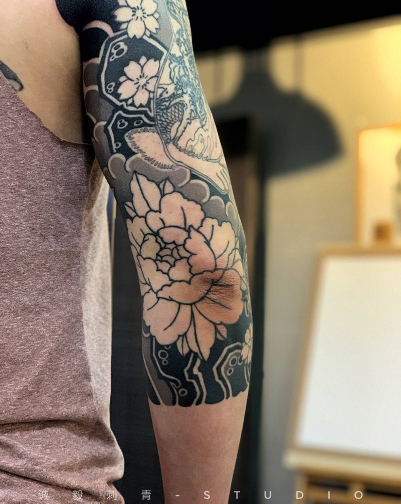 当前位置: 首页 >福建省泉州市纹身店-诚毅刺青纹身图案>生肖花臂纹身图片_手臂肩部新传统老传统纹身图案
