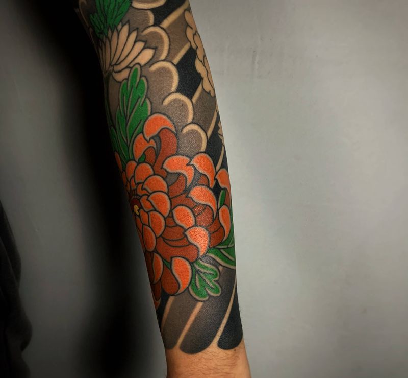 当前位置: 首页 >福建省泉州市纹身店-诚毅刺青纹身图案>花臂局部纹身图片_肩部手臂新传统老传统纹身图案