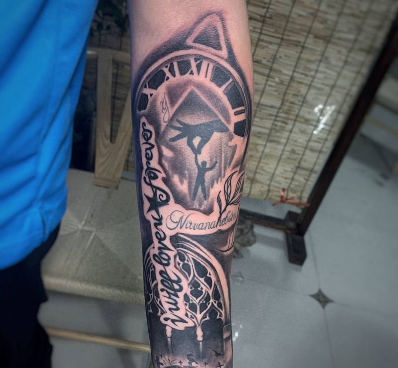 当前位置: 首页 >福建省三明市纹身店-溯刺青纹身图案>写实纹身图片_手臂欧美写实 钟纹身图案
