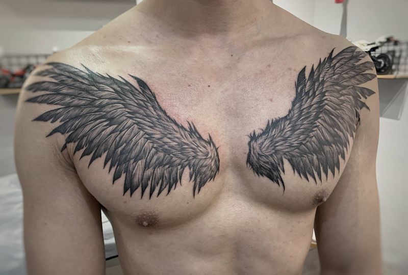 当前位置: 首页 >福建省泉州市纹身店-诚毅刺青纹身图案>天使之翼纹身图片_肩部胸部新传统欧美写实纹身图案
