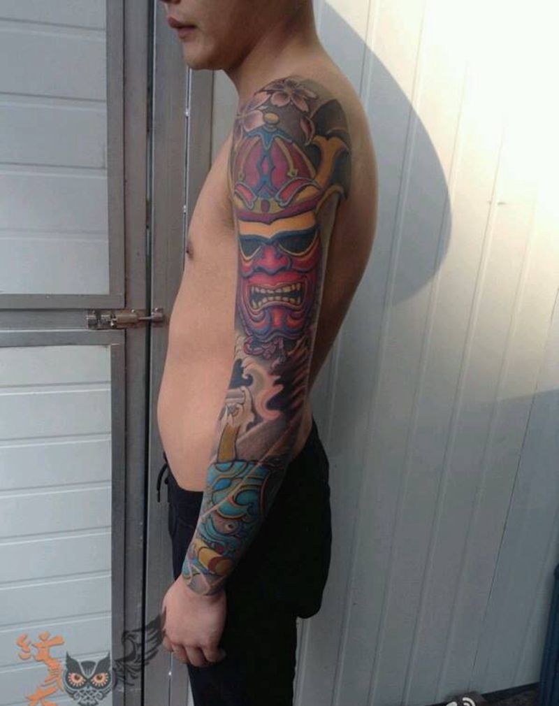 当前位置: 首页 >福建省泉州市纹身店-诚毅刺青纹身图案>甲胄般若花臂纹身图片