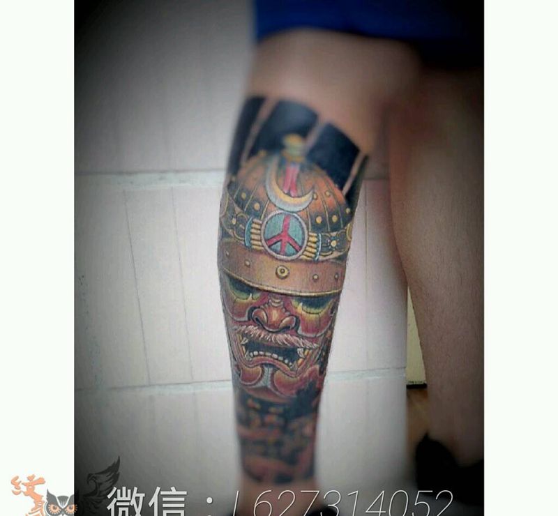 当前位置: 首页 >福建省泉州市纹身店-诚毅刺青纹身图案>小腿甲胄纹身图片