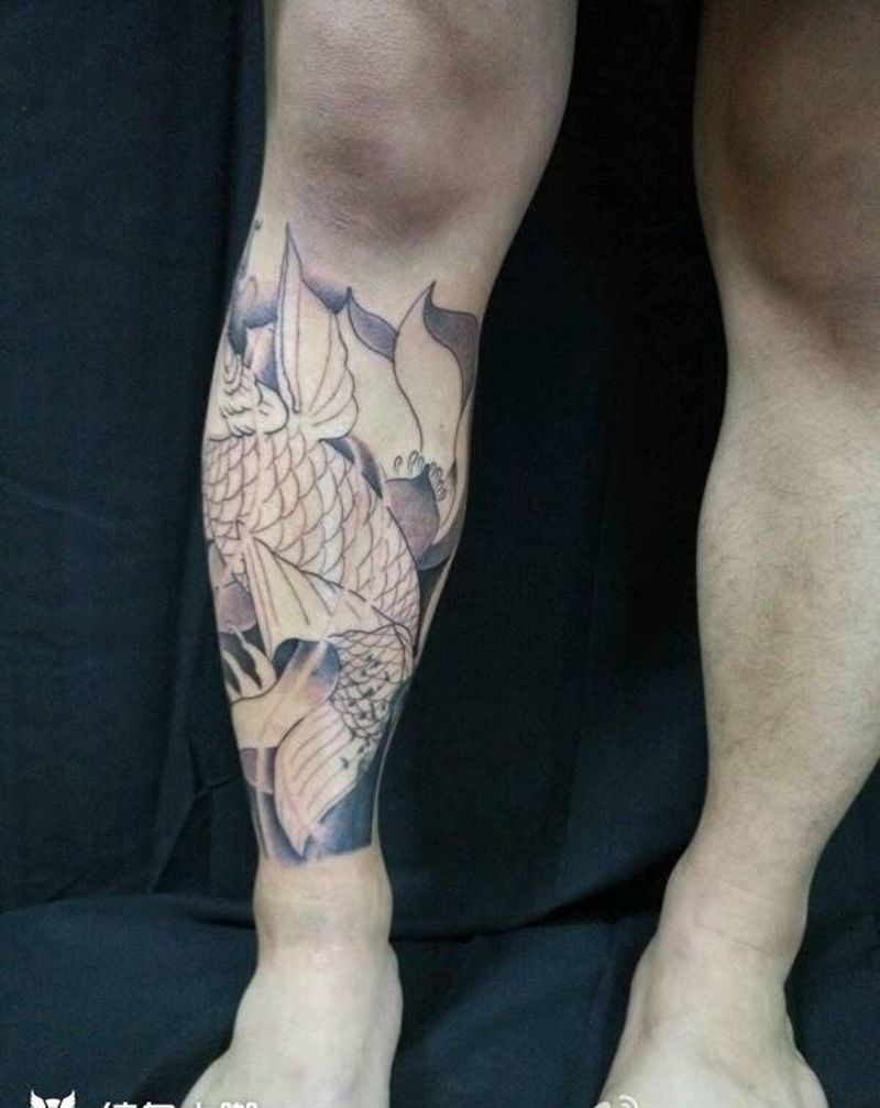 当前位置: 首页 >福建省泉州市纹身店-诚毅刺青纹身图案>小腿鲤鱼遮盖羽毛纹身图片_肩部胸部手臂腿部传统习俗动物植物原创纹身图案