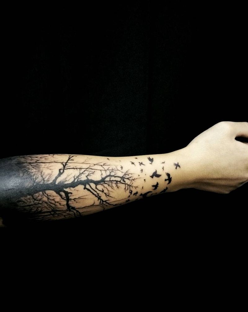 树林纹身纹身图片_手臂腿部欧美写实植物静物纹身图案