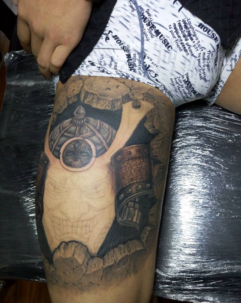 当前位置: 首页 >福建省泉州市纹身店-诚毅刺青纹身图案>原创纹身图片_背部手臂腿部欧美传统写实人物鬼神原创纹身图案