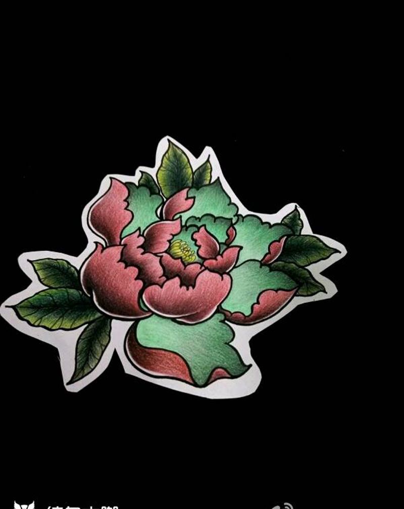 暗色原创牡丹纹身图片_肩部手臂腿部欧美传统清新写实植物静物原创纹身图案