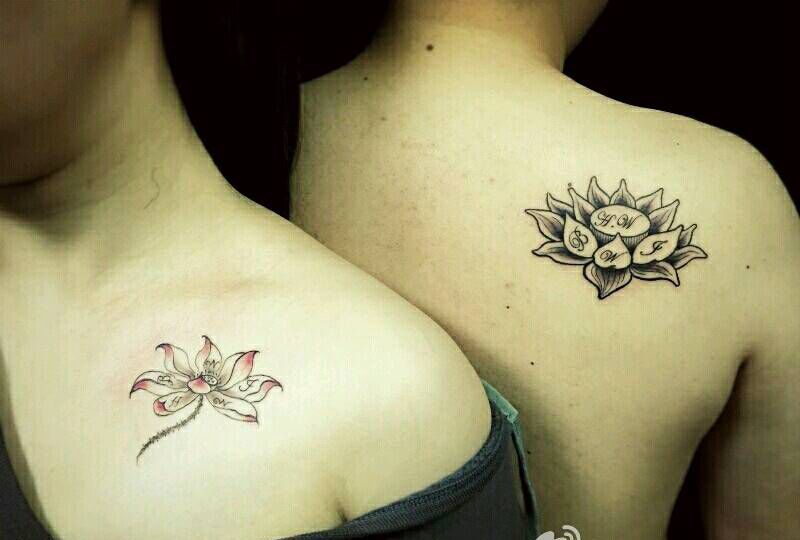 两个原创莲花作品纹身图片_胸部背部手臂腿部欧美传统清新字符植物原创纹身图案