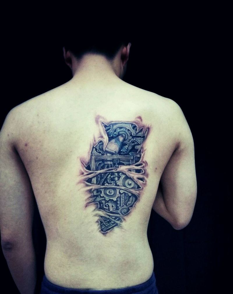 机械遮盖未完成纹身图片_欧美写实成品纹身图案