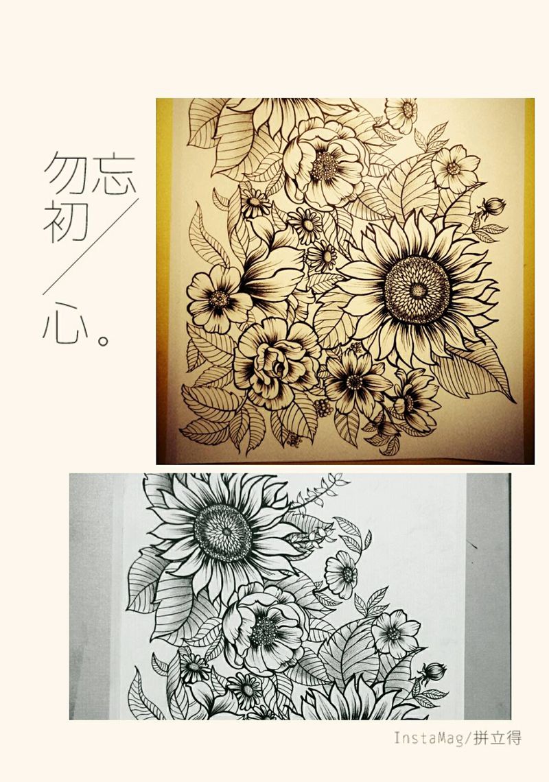 预约的手稿完成纹身图片_背部手臂欧美清新写实国画植物静物情侣原创纹身图案