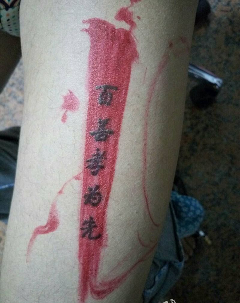 指导徒弟遮盖{作品名10}纹身图片_腿部传统国画字符图腾原创成品手稿纹身图案