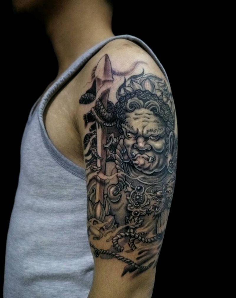 当前位置: 首页 >福建省泉州市纹身店-诚毅刺青纹身图案>不动明王纹身图片_手臂传统习俗人物鬼神宗教成品纹身图案