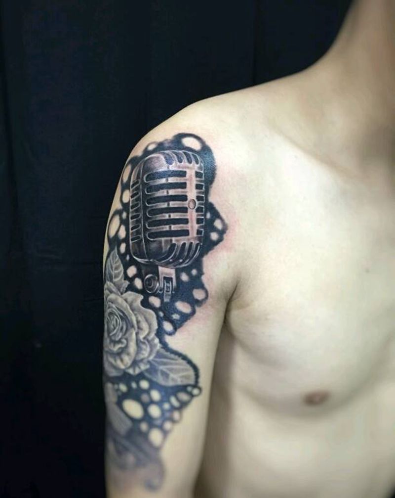 当前位置: 首页 >福建省泉州市纹身店-诚毅刺青纹身图案>音乐少年的话筒完成,无PS纹身图片