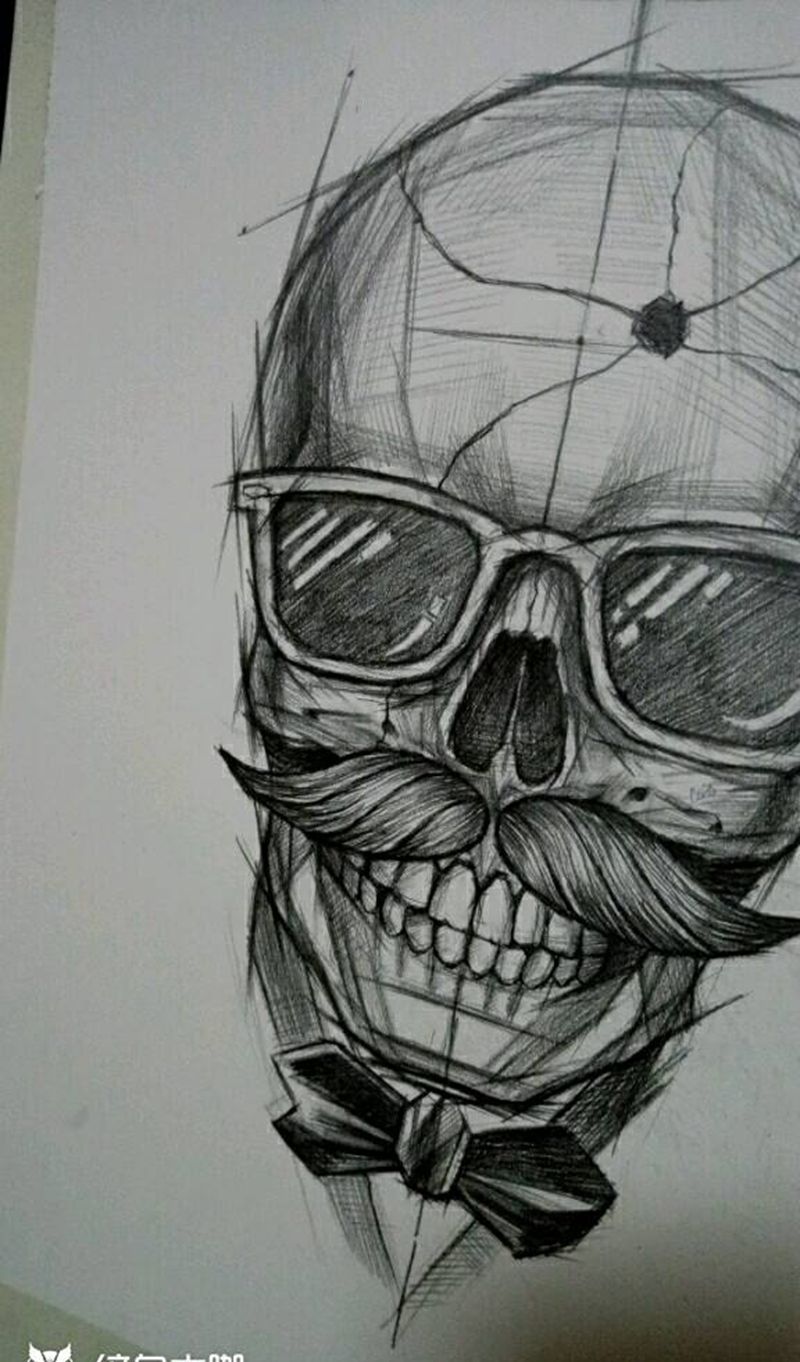 原创墨镜骷髅手稿纹身图片_手臂腿部欧美传统写实人物鬼神原创手稿插画纹身图案