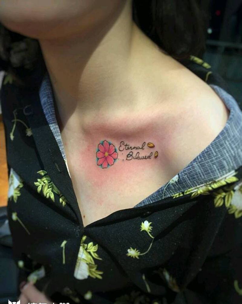 小清新小花纹身纹身图片_肩部胸部欧美清新几何字符植物图腾成品纹身图案