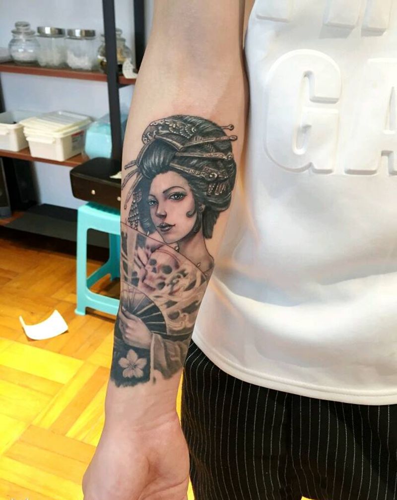 当前位置: 首页 >福建省泉州市纹身店-诚毅刺青纹身图案>艺妓纹身图片_背部手臂腿部欧美传统肖像人物成品插画纹身图案