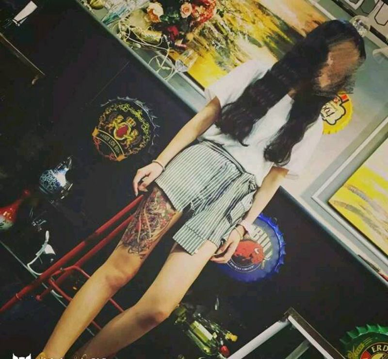 • T网红王老大花腿龙纹身图片_腿部新传统纹身图案