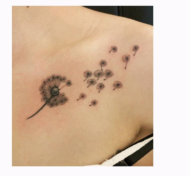 蒲公英纹身图片_肩部胸部手臂欧美清新写实植物原创成品插画纹身图案