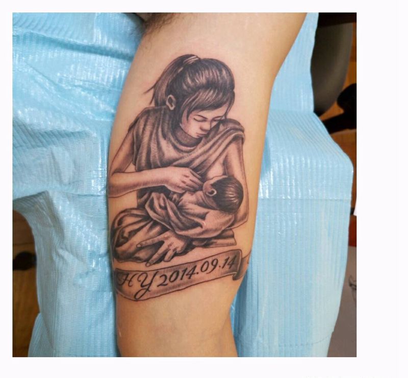 “母爱”原创作品纹身图片_手臂腿部欧美肖像清新写实人物原创成品手稿纹身图案