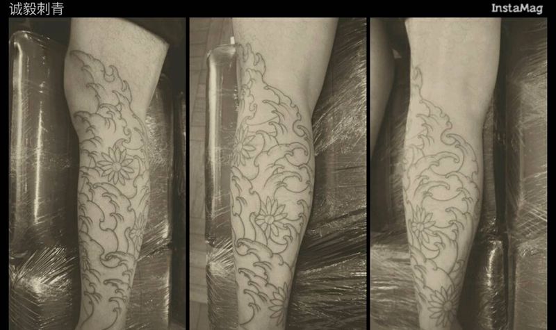 当前位置: 首页 >福建省泉州市纹身店-诚毅刺青纹身图案>浪花小腿(未完成)纹身图片