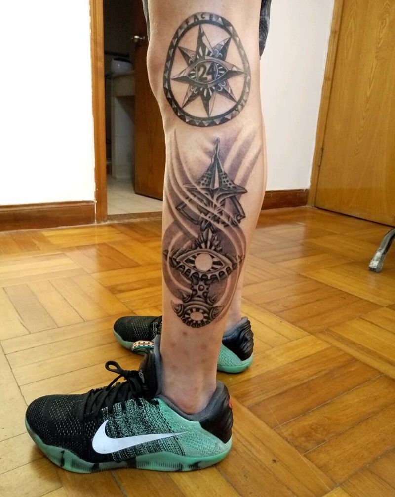 • T网红王老大花腿龙纹身图片_腿部新传统纹身图案