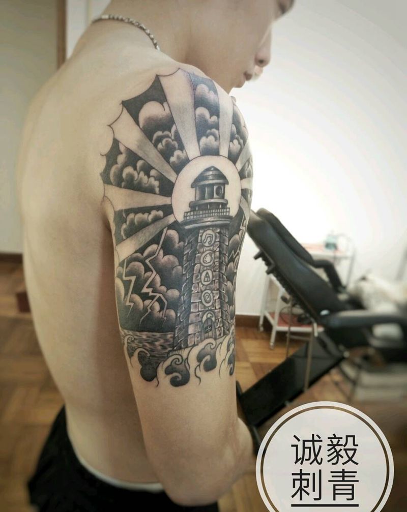当前位置: 首页 >福建省泉州市纹身店-诚毅刺青纹身图案>修改灯塔纹身纹身图片_背部手臂腿部欧美写实人物静物宗教原创成品纹身图案