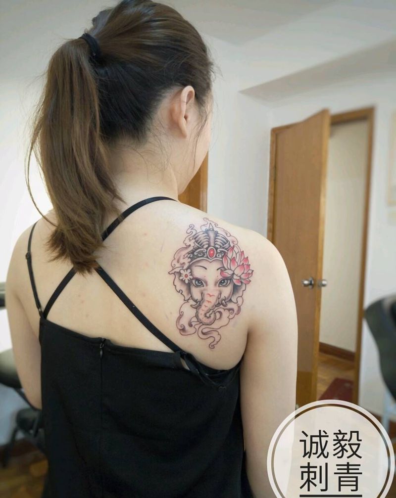 女版象神纹身图片_肩部背部腿部欧美传统清新动物人物鬼神成品纹身图案