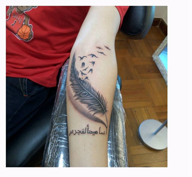 羽化鸟纹身图片_手臂腿部欧美清新写实动物人物植物成品纹身图案