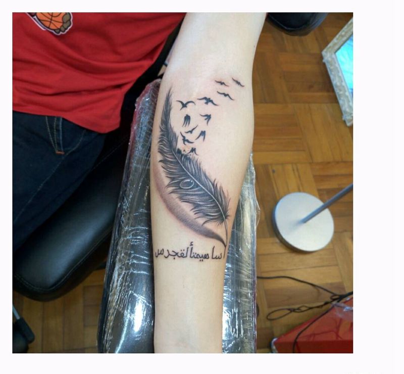 羽化鸟纹身图片_手臂腿部欧美清新写实动物人物植物成品纹身图案