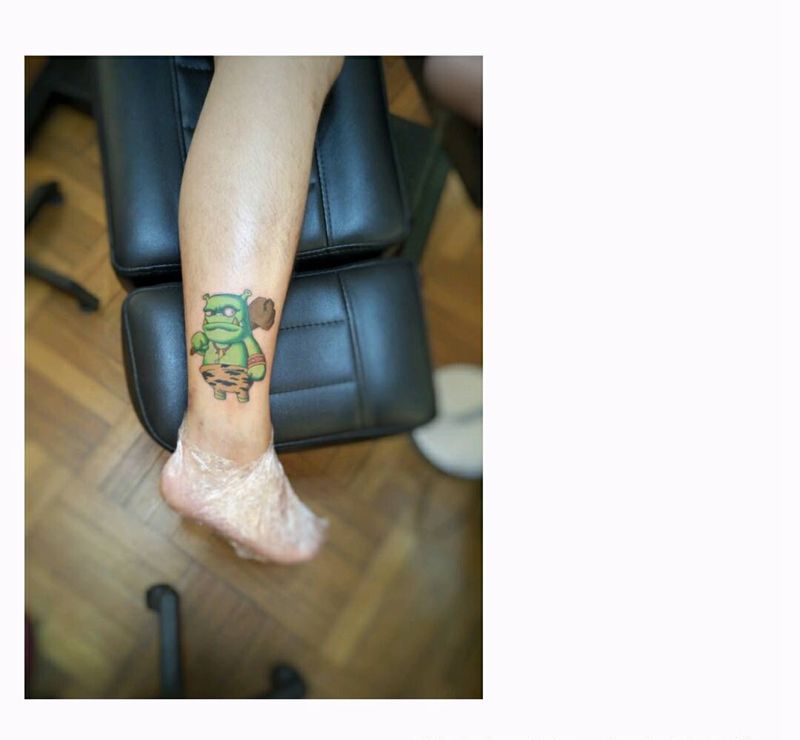 • T包小腿吹火男+阿多福纹身图片_腿部老传统新传统吹火男阿