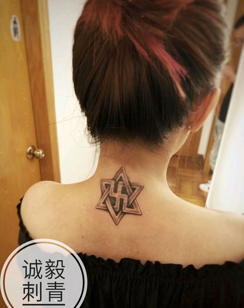 六芒星遮盖旧纹身疤痕纹身图片_颈部肩部手臂欧美清新写实几何图腾宗教成品纹身图案
