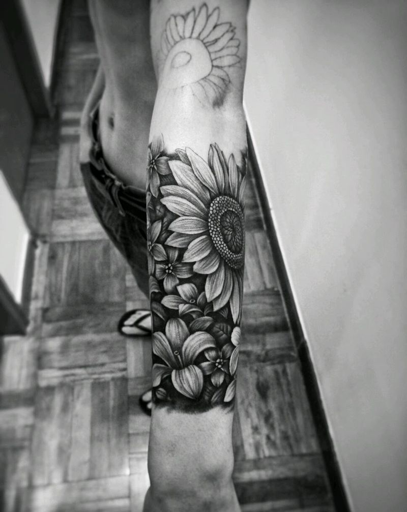 纯花臂(完成三分之一)纹身图片_手臂欧美清新写实植物原创成品纹身图案