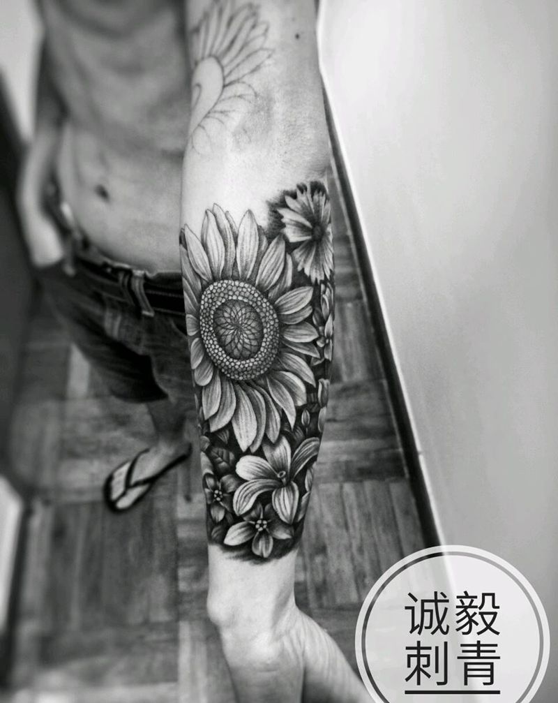 纯花臂(完成三分之一)纹身图片_手臂欧美清新写实植物原创成品纹身图案