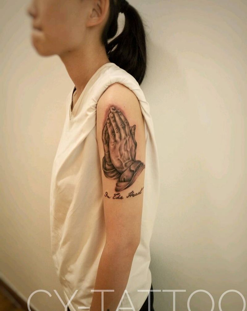 祈祷之手纹身图片_肩部胸部手臂欧美肖像写实人物成品纹身图案