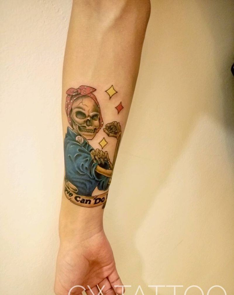 newschool骷髅女纹身图片_手臂腿部欧美传统清新几何人物鬼神成品插画纹身图案