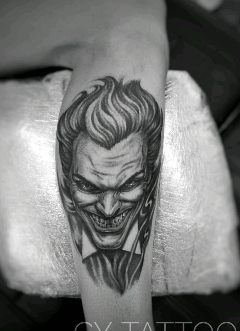 当前位置: 首页 >福建省泉州市纹身店-诚毅刺青纹身图案>素描小丑纹身图片_手臂腿部欧美肖像写实人物鬼神成品插画纹身图案