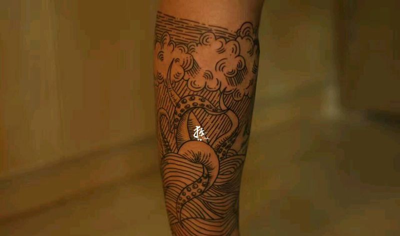 • T网红王老大花腿龙纹身图片_腿部新传统纹身图案