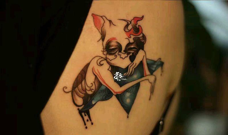 小恶魔纹身纹身图片_肩部胸部手臂腿部欧美清新人物鬼神成品插画纹身图案