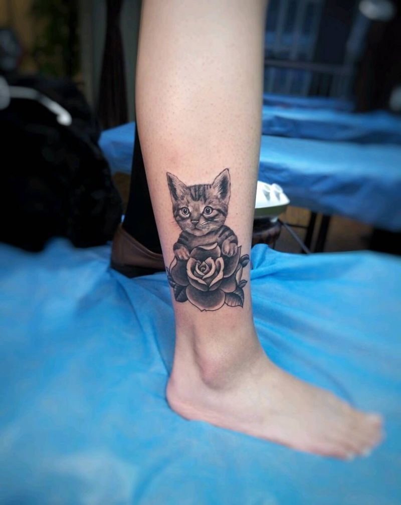 当前位置: 首页 >福建省泉州市纹身店-诚毅刺青纹身图案>原创作品玫瑰猫纹身图片_肩部手臂腿部欧美清新写实动物植物原创成品纹身图案
