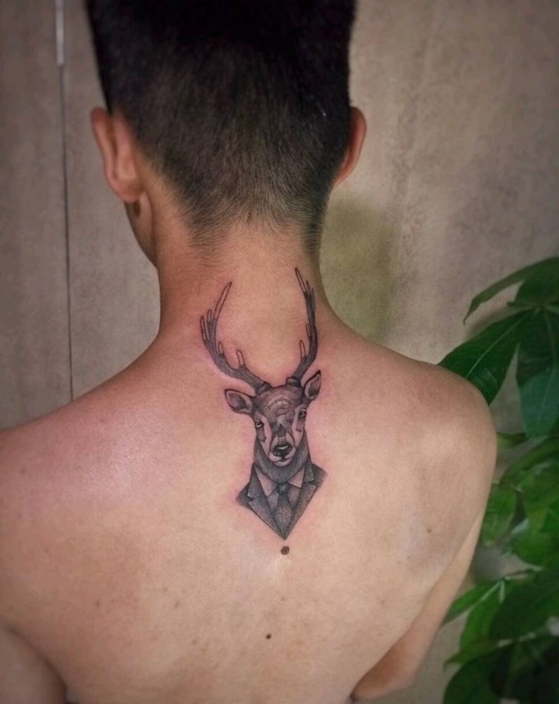 鹿纹身图片_颈部肩部手臂腿部欧美清新写实动物人物成品纹身图案