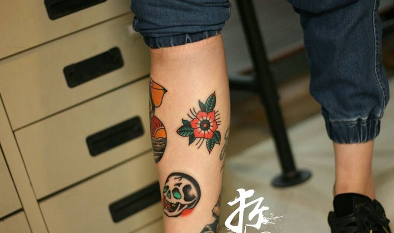 当前位置: 首页 >福建省泉州市纹身店-诚毅刺青纹身图案>oldschool拼接纹身图片_腿部欧美传统习俗清新动物人物植物成品纹身图案