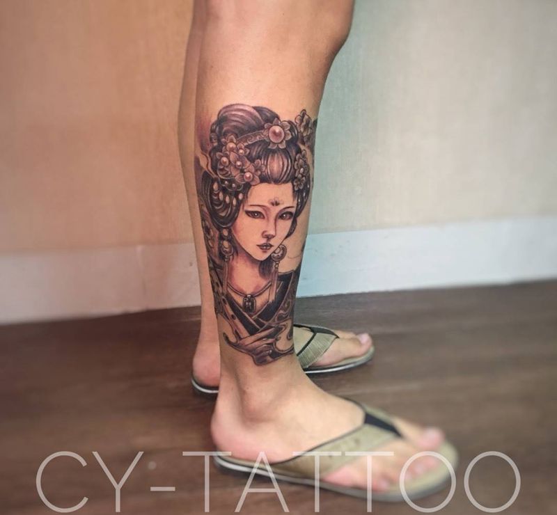 当前位置: 首页 >福建省泉州市纹身店-诚毅刺青纹身图案>艺妓纹身图片_传统肖像清新手臂腿部成品人物纹身图案